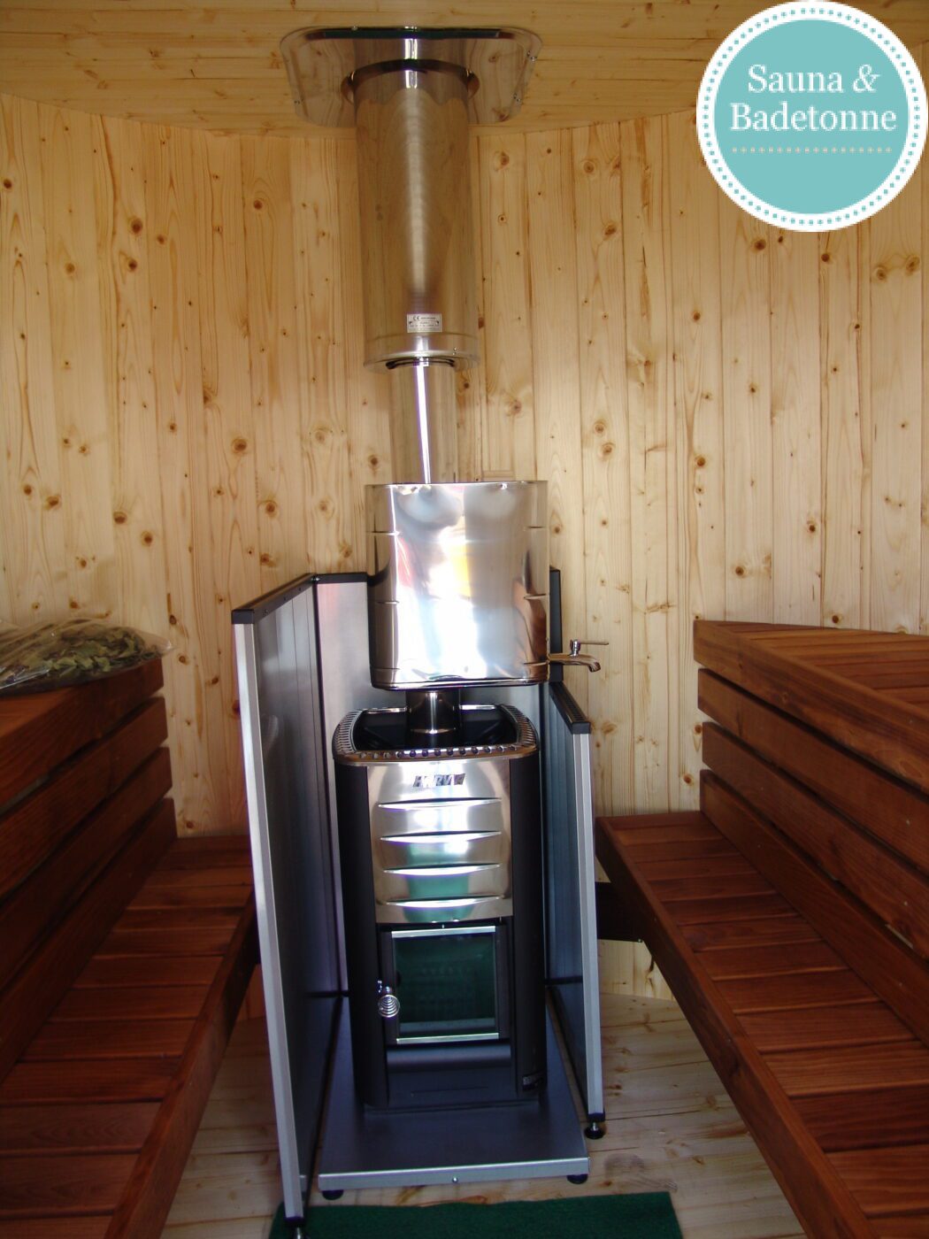 Die holzbeheizte Variante bietet ein besonders traditionelles Saunaerlebnis und funktioniert völlig unabhängig von Stromanschlüssen.