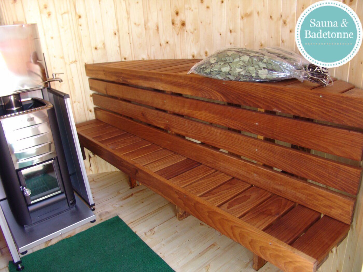 Die Sauna kann mit Holzofen oder Elektroofen betrieben werden.